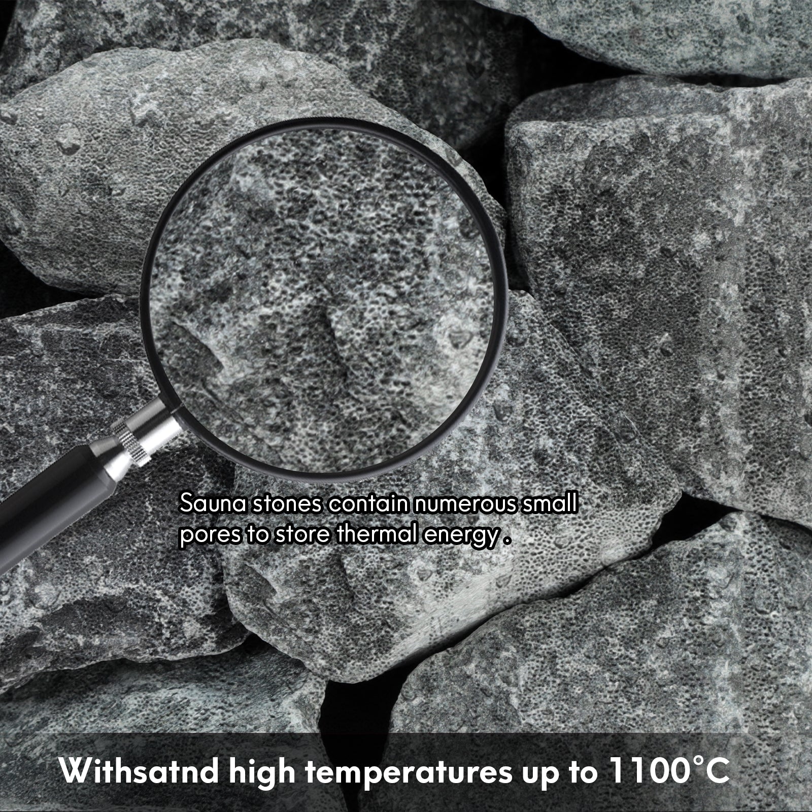 - Heat Balance - The surface of saunas stones has numerous fine pores, allowing them to easily absorb and evaporate moisture, evenly releasing heat and steam into the air.