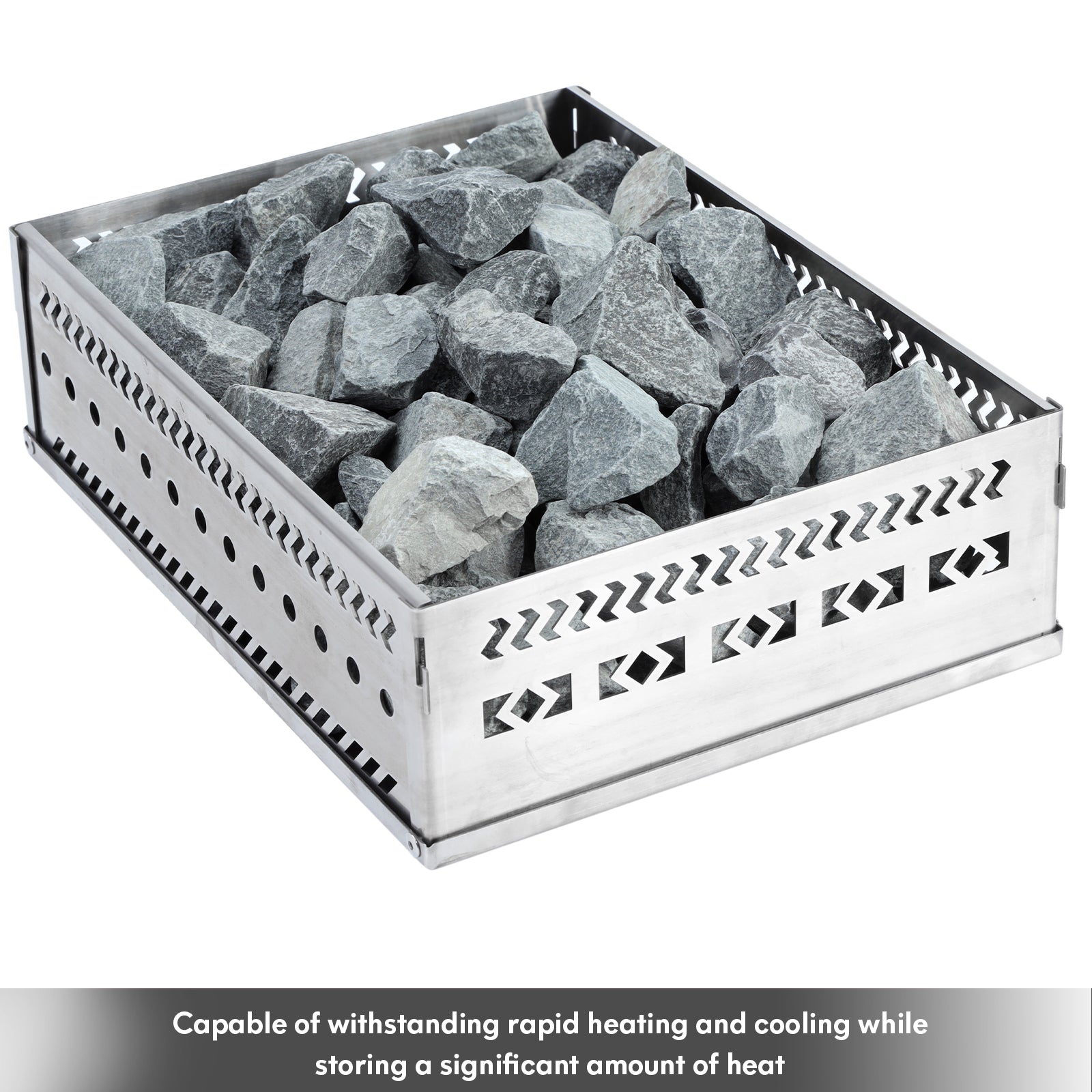 - Premium A+ Grade Sauna Stones set - Each sauna stone is similar in size, weight, and color. Each sauna box weighs approximately 35lb/16kg.
